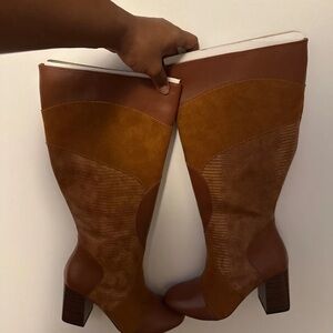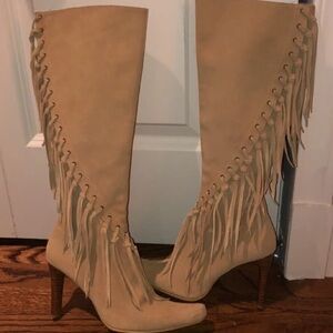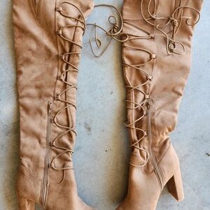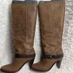 Womens Taupe Pointy Toe Slouchy Knee High Boots