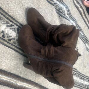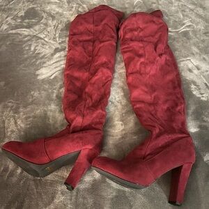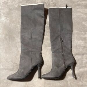 These trendy knee high boots feature a pointy toe silhouette, slouchy shaft design, and slim stiletto heel. Finished with a cushioned insole, full-length side zipper closure.