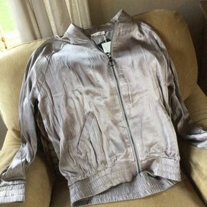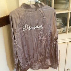 Womens Taupe Satin Dreamer Bomber Jacket sz medium bust 23” flat