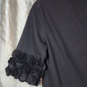 Taylor size 8 Super cute fitted black knit dress with high neck and longer sleeves with fabric flower embellishments is classy & sophisticated while hugging your curves.