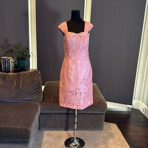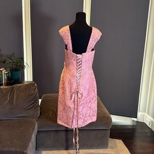 Women’s Tea Length Pink Formal Dress Corset Matching Chiffon Jacket Size 12 NWT