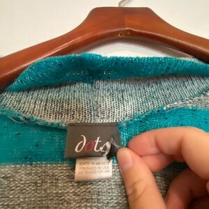 This women's blouse from Dots is perfect for any occasion. The white and teal striped pattern adds a pop of color to any outfit. Made from polyester, this blouse is both comfortable and durable. It's a great addition to any wardrobe, and is sure to become a favorite. Perfect for women of all sizes, this blouse is available in small size. No known issues