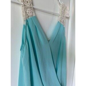 Women’s Teal Lace Sheer Tank Top M Medium Y2K Double Zero Blouse (Box C)