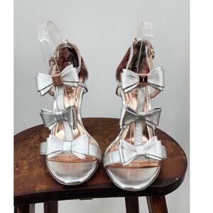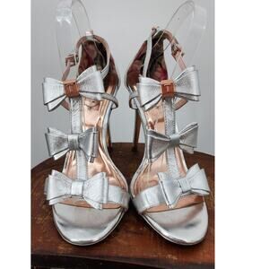 Womens Ted Baker Silver Bow Rose Gold Trim Heels Size 40 9.5