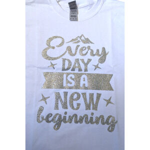 Womens Tee "Every Day Is A New Beginning" - Silver Sparkle Lettering - Size M