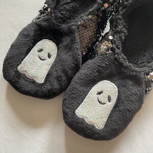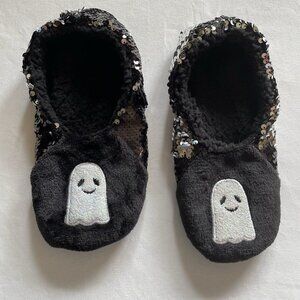 VGUC. Minimal wear. Black flip sequins Halloween slippers. Ghosts on front. Hyde and Eek. Fit women's sizes 5-7. Smoke free home.
