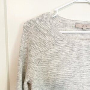 VGUC. Minimal wear. Light gray loos fitting sweater. Flair arms. LOFT size medium petites. No holes or stains. Smoke free home. #mamafall #mama #sweaters #loft #cozy