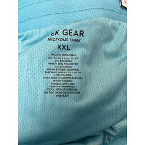 Women's Tek Gear Mid Rise Shorts XX Large, Party Blue, Teal (the color is closer to teal than what the pictures show). These active wear work out shorts have an elastic waistband and 2 side zipper pockets. They are moisture wicking and breathable, making them perfect for any type of exercise. Polyester and spandex.