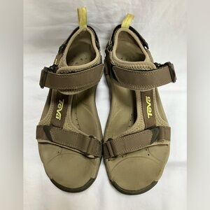 Comfy chunky classic Teva style. Excellent used condition. Velcro straps, durable plastic clips. Molded EVA midsole has drainage ports. Rubber outsole grippy when wet. Smoke-free home.