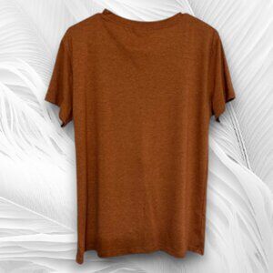 Stylish women's T-shirt in a warm brown color with the inscription Thankful on the chest.