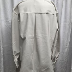 Elevate your style with this elegant leather cream button-up jacket. Perfect for any occasion, this jacket offers both comfort and sophistication. size Medium, NWT