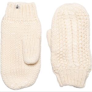 These women's mittens feature a soft knit-fleece liner and a classic cable knit style that looks great with virtually any cold-weather outfit. These mittens will keep you warm all season long. Be prepared for compliments when you wear the Women's The North Face Cable Minna Mittens.Tge extra detailing used with seed stitching the Ultra-luxe yarn provides a super soft hand feel