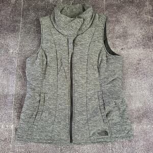 Women's The North Face Heather Gray Black Pseudio Zip Up Puffer Vest Jacket Sz L