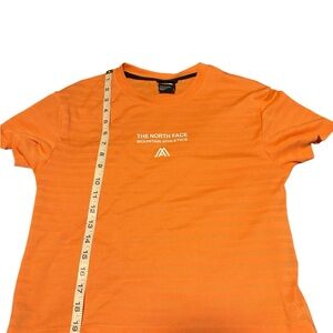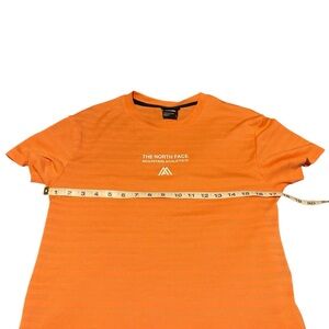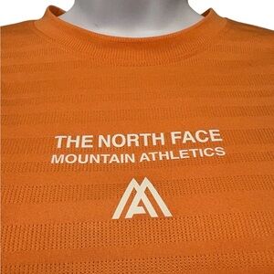 Vibrant orange tee by The North Face. Features Mountain Athletics logo. Comfortable and stylish.