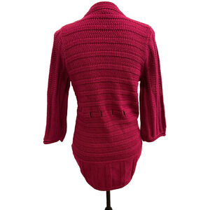 Women's The Sweater Project Open Front Knit Cardigan Mid Length Maroon Size Med