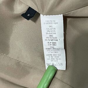 Features: Tailored topper, flirty peplum hem, notched lapel, long sleeves, button front two buttons, khaki tan color