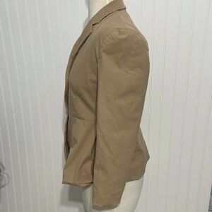 Women's Theory Braneve Approach Peplum Blazer Tan Size 8 Two Buttons Career Work