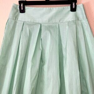 This is a Women’s Theory Green pin striped side zip pleated skirt size 4 in gently used condition