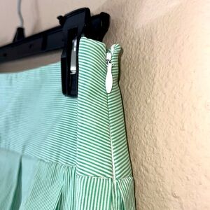 Women’s Theory Green pin striped side zip pleated skirt size 4 old money classic
