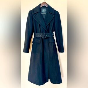 Women’s Theory (Long) Black Peacoat Coat w Grommet Belt - Size P - very chic!