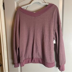 Women's Thermal Lightweight Sweatshirt Size L Wide V Neck Slouchy Light Maroon