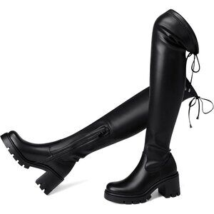 CHUNKY HEEL BOOTS WITH BOLD STYLE: These over-the-knee boots feature a sturdy 3-inch block heel and 1.6 inch platform for added height and stability, Perfect for all-day wear during fall and winter commutes or a night out