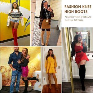 Features: These thigh-high boots have a chic suede finish, a comfortable 3.5-inch heel, and a convenient inside zipper for easy wearing. The adjustable lace-up detail at the top ensures a secure fit, making them perfect for showing off your legs with any outfit. Whether you're dressing up shorts, skirts, or jeans, these boots add a bold, fashionable statement.