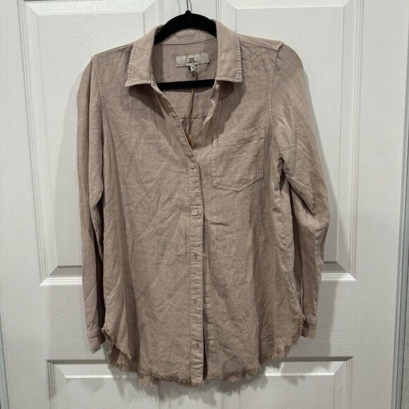 Women’s Thread & Supply Linen Blend Button Up Top Short Distressed NWT Brown Tan