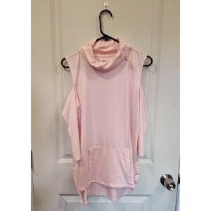 Women's Three Hearts Cowl Neck Cold Shoulder Lightweight Top Pink Small