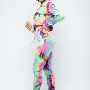 Women's Tie Dye Long Sleeve Crop Hoodie Elastic Waist Leggings -2 Piece Set