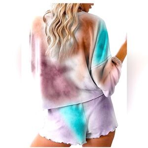 Women’s Tie Dye Long Sleeve Shorts Two Piece Lounge Set