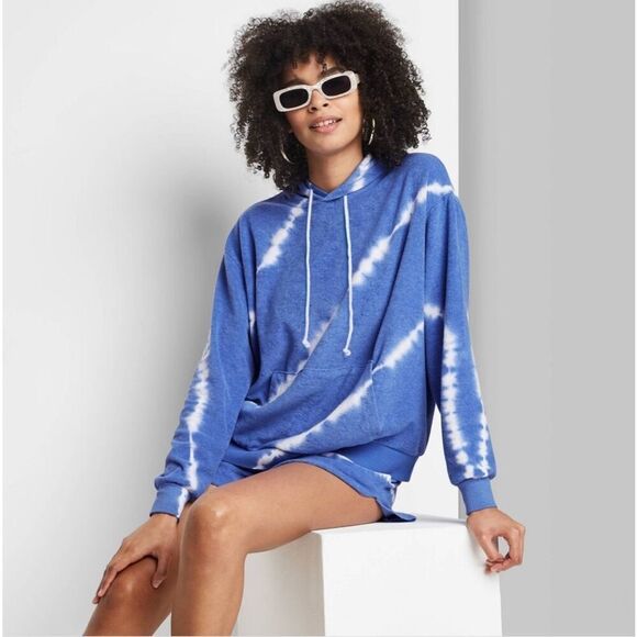 Women's Tie Dye French Terry Hooded Sweatshirt - Wild Fable - blue and white - x