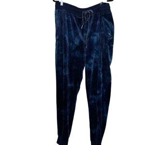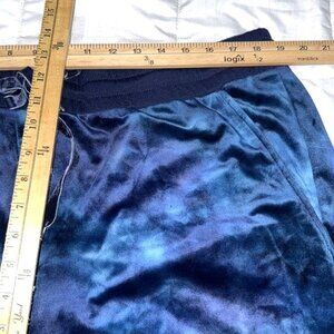 Designed with a plush velvety feel, these jogger pants combine style and comfort. The blend of polyester and spandex ensures durability and stretch. Ideal for casual wear or lounging, the blue tie-dye pattern adds a trendy touch. Functional with an elastic waistband and drawstring for a secure fit.