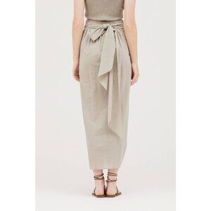 Women’s Tie-Front Wrap Skirt – Midi Length, Neutral Taupe