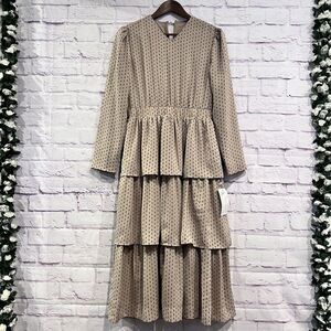 Women’s Tiered Bohemian Cream Ruffle Maxi Dress V Neck Long Sleeve Flowy Dress