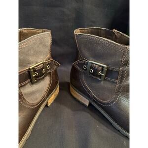 Great pair of Women’s Timberland Earthkeepers Leather Bethel Zip On Ankle Boots Brown size 8.5. They have some very light scuffing. It’s really hard to see, but I did want to mention. These are in excellent used condition.