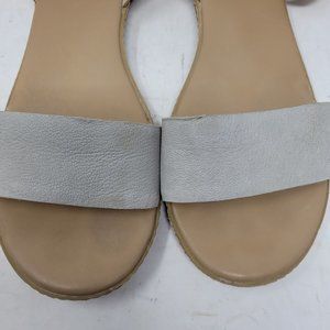Womens Timberland Grey Tan Ankle Strap Leather Flat Peep Toe Sandals Size 9.5