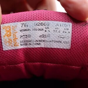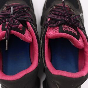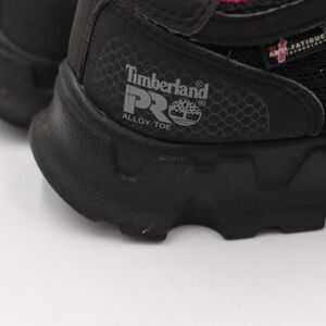 Women's Timberland PRO Powertrain Alloy Safety Toe shoes in a striking Black and Pink colorway. This low-profile work sneaker offers the perfect balance of durability and street-ready style. Lightweight alloy safety toe ensures essential protection, while the low-top design allows maximum flexibility and movement. Cushioned anti-fatigue sole and sturdy slip-resistant tread provide comfort for long hours. Ideal for warehouse, construction, workshop, or EMT utility jobs. Gently used preowned with excellent tread life remaining. Minor cosmetic spot on the back of one shoe (see photos).