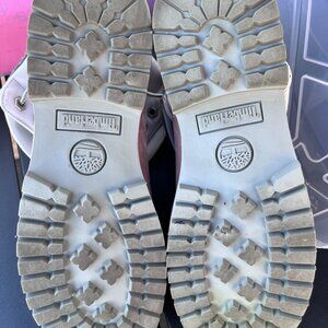 Stylish and durable Timberland roll-top boots featuring a mauve suede exterior with gray fold-over detail. Cushioned collar and sturdy rubber sole for all-day comfort. A rare color combo that’s perfect for fall and versatile enough to wear with jeans, leggings, or dresses.