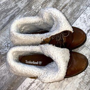 Womens Timberland Waterproof Roll Top Faux Fur Sherpa Lined Brown Boot Size 6