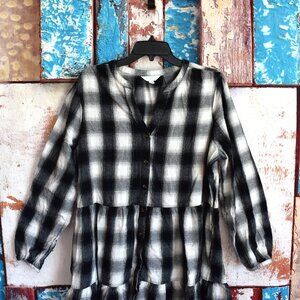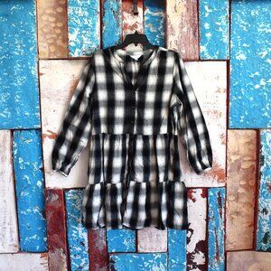Women's Time And Tru Button Front Long Sleeve Flannel Dress XLARGE Black Plaid