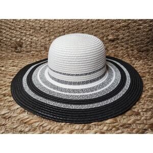 Women's Time and Tru Striped Floppy Straw Hat ONE SIZE Black White Stripe NEW!