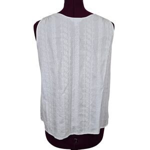 Women's Time and Tru White Eyelet V-Neck Sleeveless Blouse | Size Medium