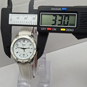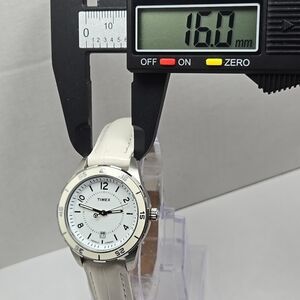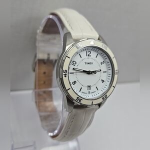 Womens Timex Premium Date Watch White Silver WR50M Rotating Bezel New Battery