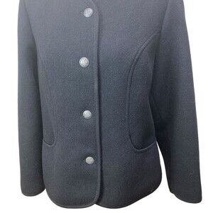 Women's Tirol Austria Jacket Trachten Loden Walk & Metal Tirol Buttons 100% Wool Black Lined Size Large chest across 21 in length 24 in sleeves 24 in great condition