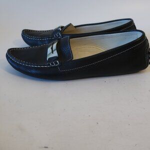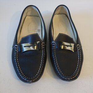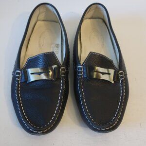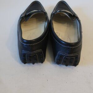 Womens Tod's Black Leather Driving Loafers W/Gray Stone Buckle 10