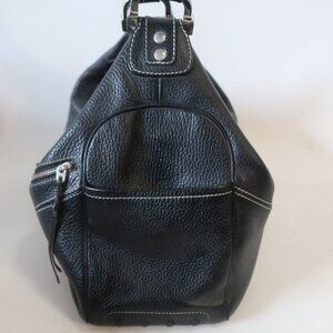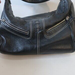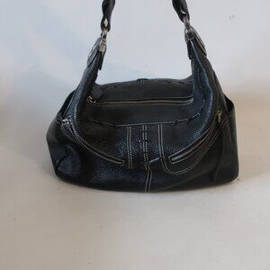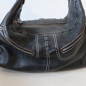 Womens Tod's Black Pebbled Leather Whipstitch Trim Hobo Shoulder Handbag