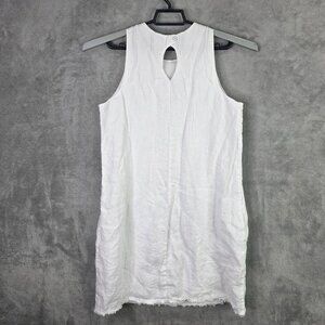 Womens Tommy Bahama White Sleeveless 100% Linen Shift Dress Keyhole Back Size M