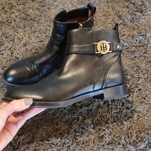 Womens Tommy Hilfiger Ornamented Zip Up Black Bootie
