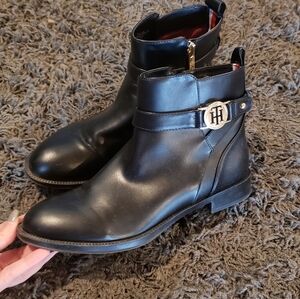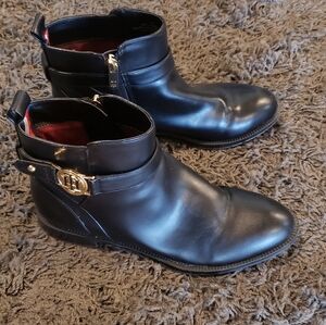 Womens Tommy Hilfiger Ornamented Zip Up Black Booties